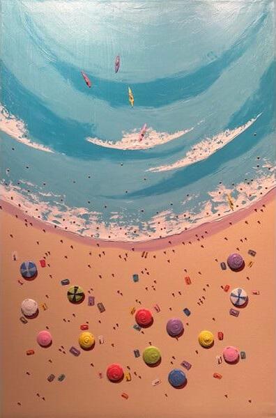 Alfredo Candela Mixed Media Back to Artist Rip Tide Swept Away SOLD Surfing The USA SOLD Long Beach SOLD Busy Beach SOLD